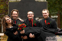 Carl was in a black suit, red shirt and black tie, contrasting with his Bestmen in black shirts and red ties.