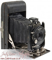 It took me a while to figure out which camera would fit best. I wanted to use the Butchers No.4 (c.1915 I think - correct me if I'm wrong) to the left but I couldn't get the shutter to stay open also the Butchers' body would have needed mounting further away from the 5d's body to allow me to get it off and on. I finally decided on the Vest Pocket Kodak Model B (c. 1925) from my little collection. Sure, it's worth some money, not a massive amount but the cameras are just sat there in the studio.